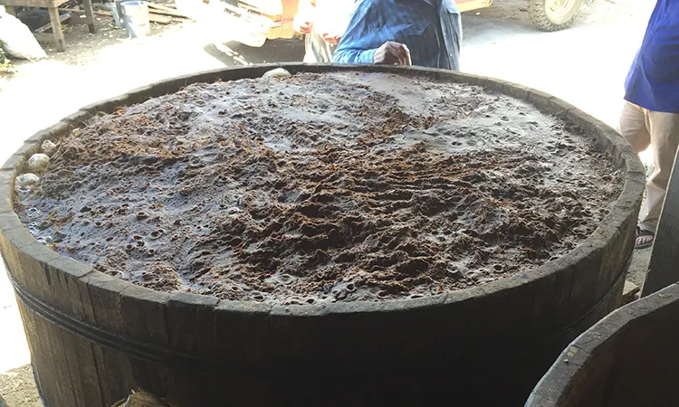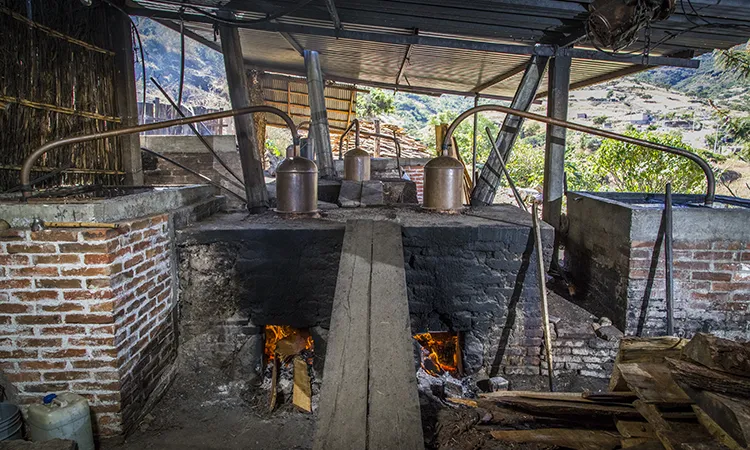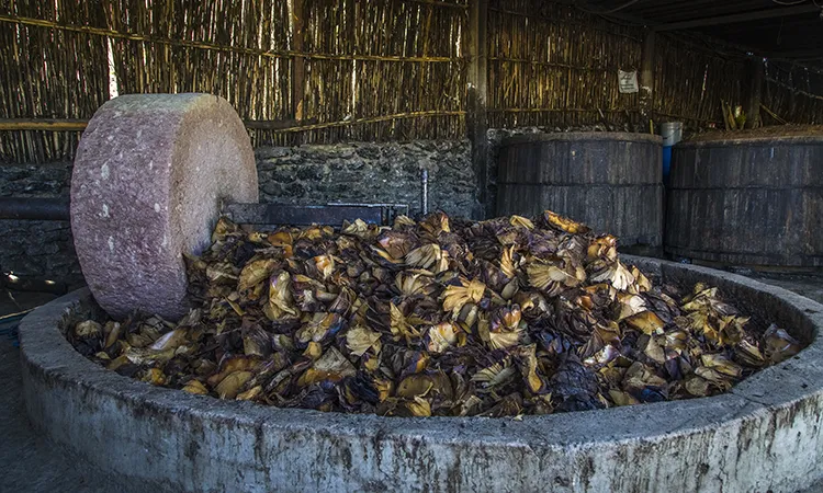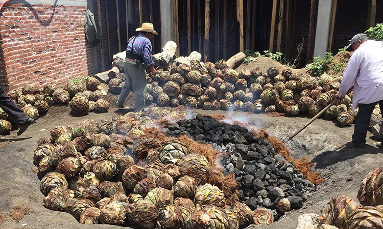 Este proceso se realiza en un horno cónico de piedra, en el centro se coloca leña y se le prende fuego, y arriba se colocan piedras de río. Una vez que las piedras están calientes, se coloca bagazo encima de ellas, esto sirve para que el agave no tenga contacto directo con la piedra caliente y no se queme. El agave se pone sobre el bagazo y se cubre con una lona y tierra para mantener el calor en su interior durante 4 ó 5 días.